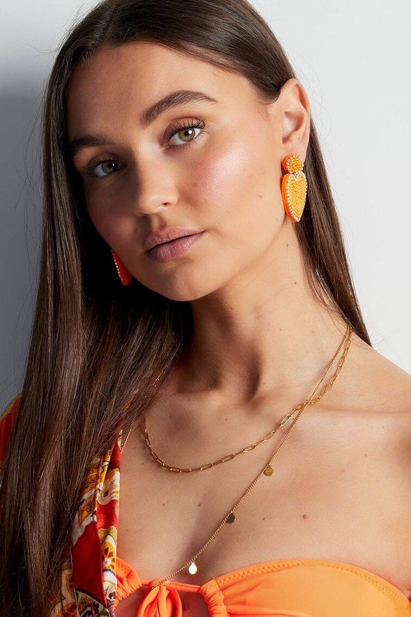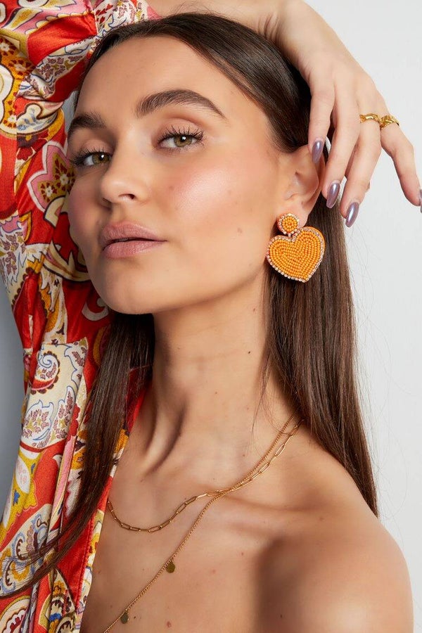Oorbel Kralen Hart Dubbel - Paars