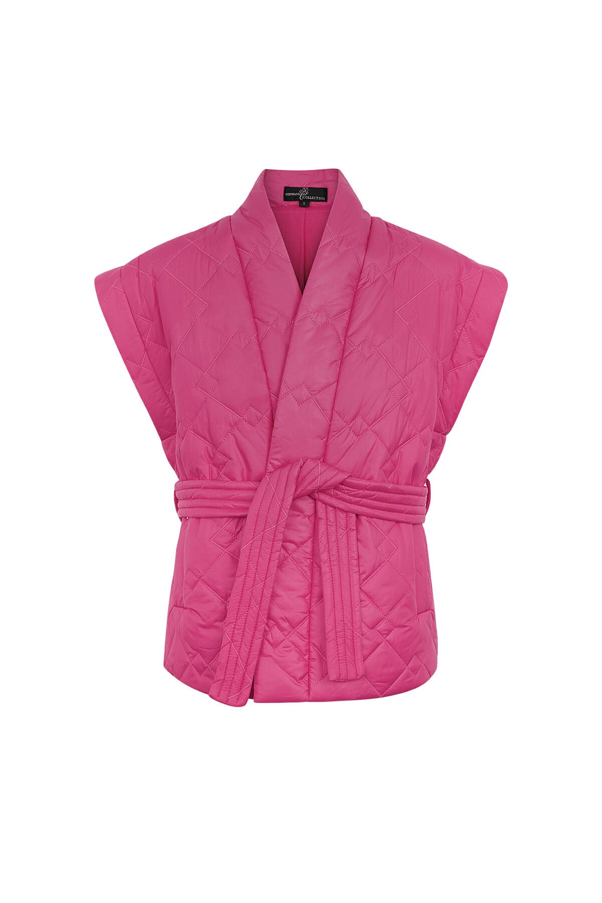 Hoe tof is deze mega trendy fuchsia gilet met borduursel en matchende riem. Erg leuk om te combineren met een toffe blouse of basic truitje. Ook leuk voor een complete outfit om deze gilet te combineren met kleurrijke sieraden & accessoires. De binnenkant van het gilletje is gemaakt van 100% polyester en de buitenkant van 100% nylon.