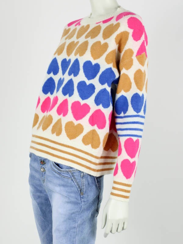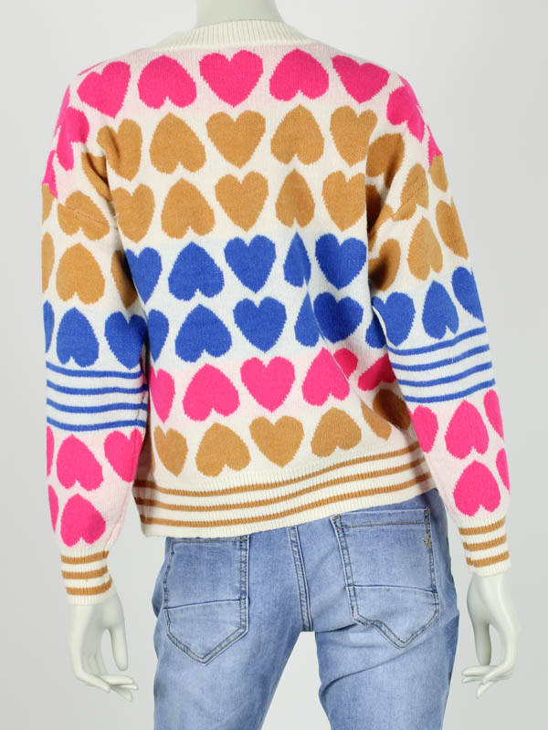 Zachte comfortabele trui met trendy hartjes motief. Deze trui is one size en goed t/m maat 40.